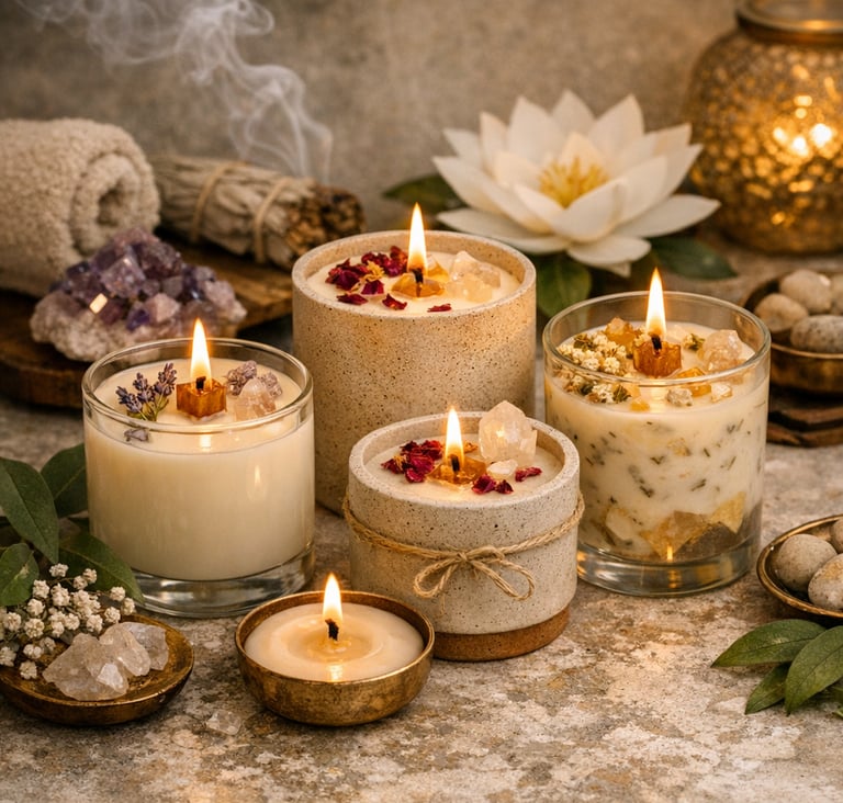 Nuestras velas terapéuticas están creadas para elevar la energía del hogar, relajar la mente y embellecer cada espacio con materiales que respetan la salud y el medio ambiente. Cada pieza es elaborada a mano con ingredientes ecofriendly que honran la naturaleza y brindan bienestar real.
